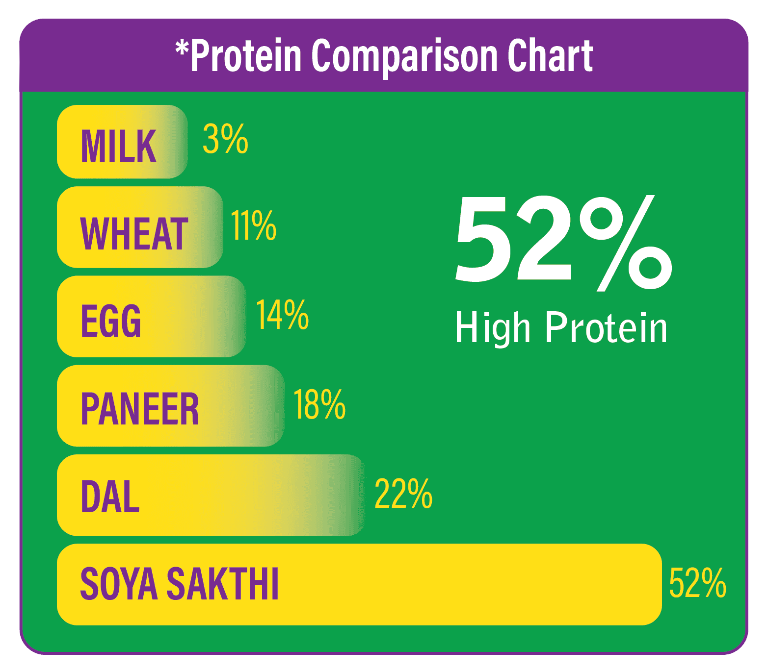Sakthi Soyas has taken a step to help Indian families bridge this nutrition gap, by introducing the Soya Sakthi range of easy-to-cook products. These are an affordable, superior quality source of vegetarian protein.